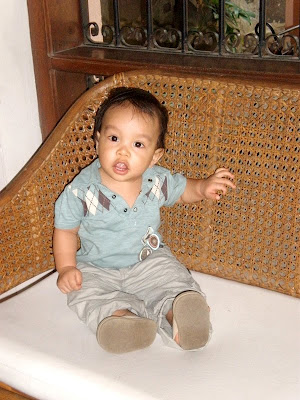 Fluffy is Vien's newest friend. He kisses him (yes he's a male!) almost every day. He talks to him in French (lol!), or something that sounds like that. Thanks to Ninang Cleo for this furry gift. Vien loves it!